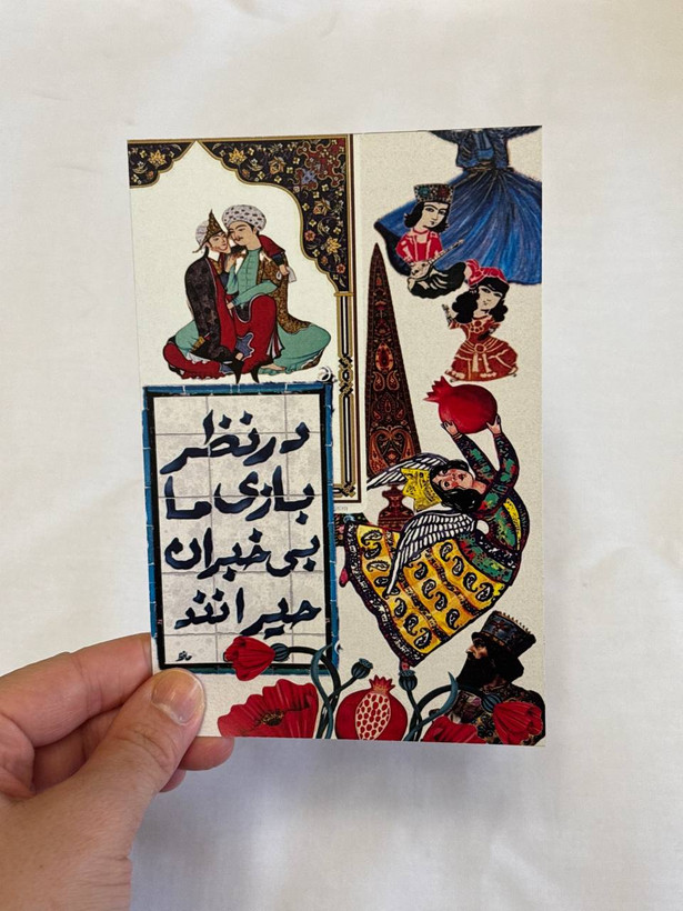 پشت کارت پستالخط چین شده و طراحی شده مخصوص نوت نویسی